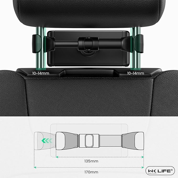 - SWIVEL BALL: The Car Headrest Tablet Mount Has Swivel Ball Connection For (360) Degree Rotation With Tilt Mechanism, Is Ideal For Both Portrait Or Landscape, Multi-Angle Rotation Allows For A Variety Of Different Position Adjustments To Get The Best Viewing Angle You Want.